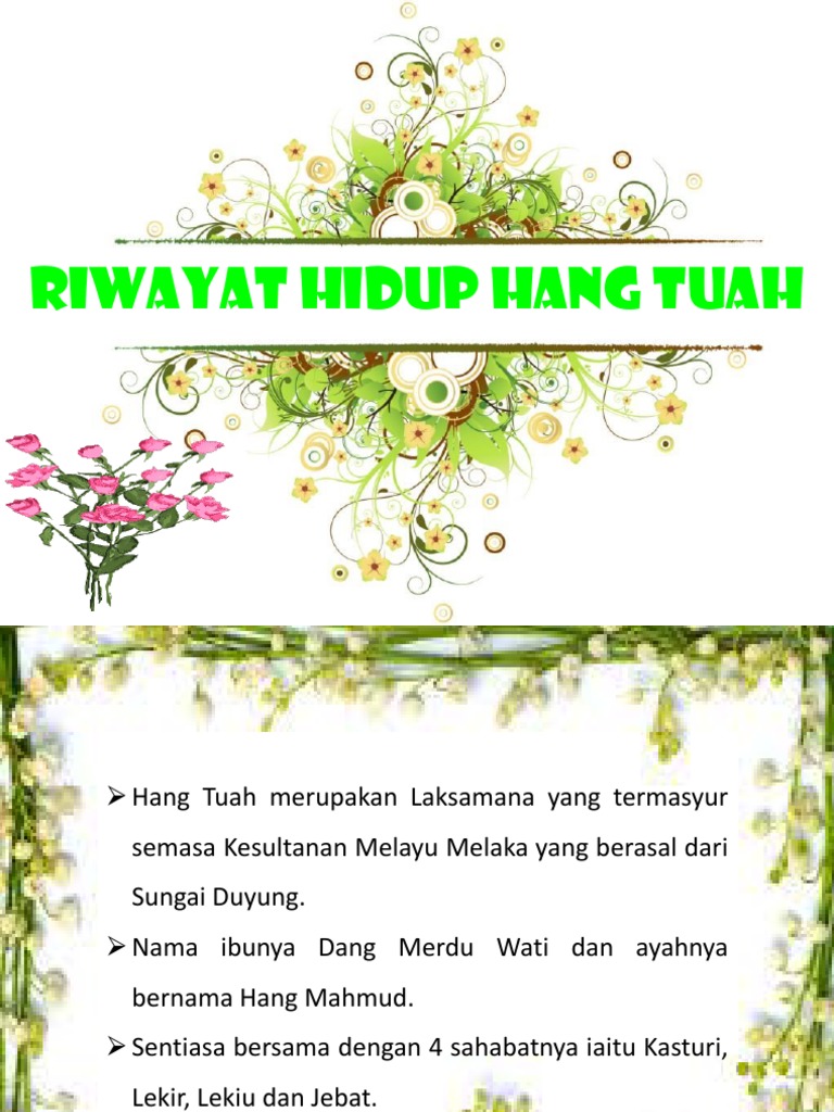 Riwayat hidup hang tuah. Hikayat hang tuah jawi. The author is unknown however it has been accepted that it was written and rewritten by. Zaman ini dapat diagakkan pertengahan kurun masihi yang keempat belas tetapi ceritanya dilanjutkan hingga melaka dikalahkan oleh feringgi. Ia telah mencatatkan riwayat hidup bangsa ini dari sejak mulanya melewati zaman pembangunannya lalu ke zaman kebesarannya lalu ke saat nahasnya pada 24 ogos 1511.