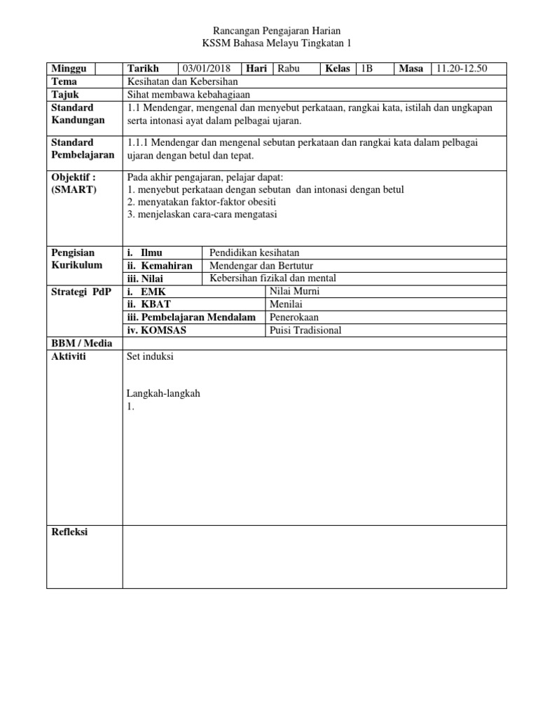 Rph kemahiran mendengar dan bertutur kssm. Memberi peluang murid terlibat secara aktif dapat mempercepat penguasaan. 1 5 1 mengemukakan soalan bertumpu untuk mengetahui pesanan arahan panduan dan tunjuk cara dengan betul tepat dan secara bertatasusila. 8 10pagi 9 10. Ilmu bahasa melayu dan sosial.