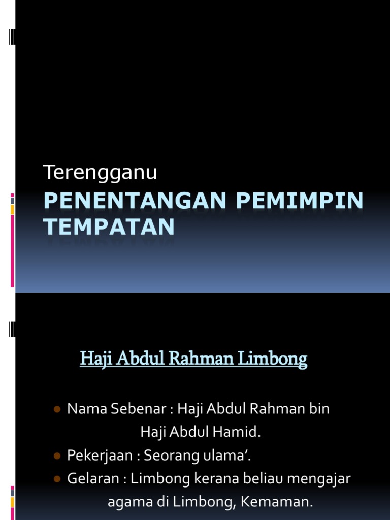 Sebab penentangan haji abdul rahman limbong di terengganu. Kebangkitan tahun 1922 dan 1925. Penentangan ini bertumpu di hulu telemong kuala telemong kuala berang alor limbat dan tersat. Penentangan haji abdul rahman limbong di terengganu latar belakang. Haji abdul rahman limbong sebagai anak jati terengganu telah banyak memberi sumbangan kepada para penduduk tempatan sama ada dalam bidang agama undang undang atau ekonomi.