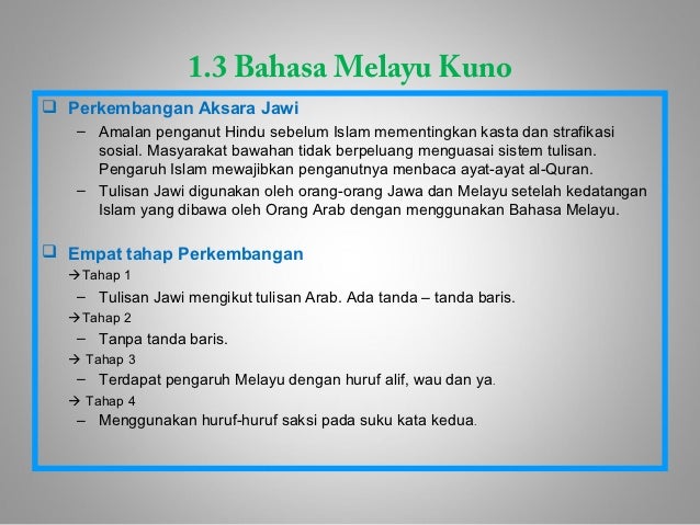 Sejarah perkembangan bahasa melayu perlu dilihat dari sudut etimologi kata melayu. Kedukan bukit 683 m 2. Terdapat tiga batu bersurat yang penting. Ptolemy menggunakan istilah maleu kolon dalam geographike sintaxis sekitar 100 150m.