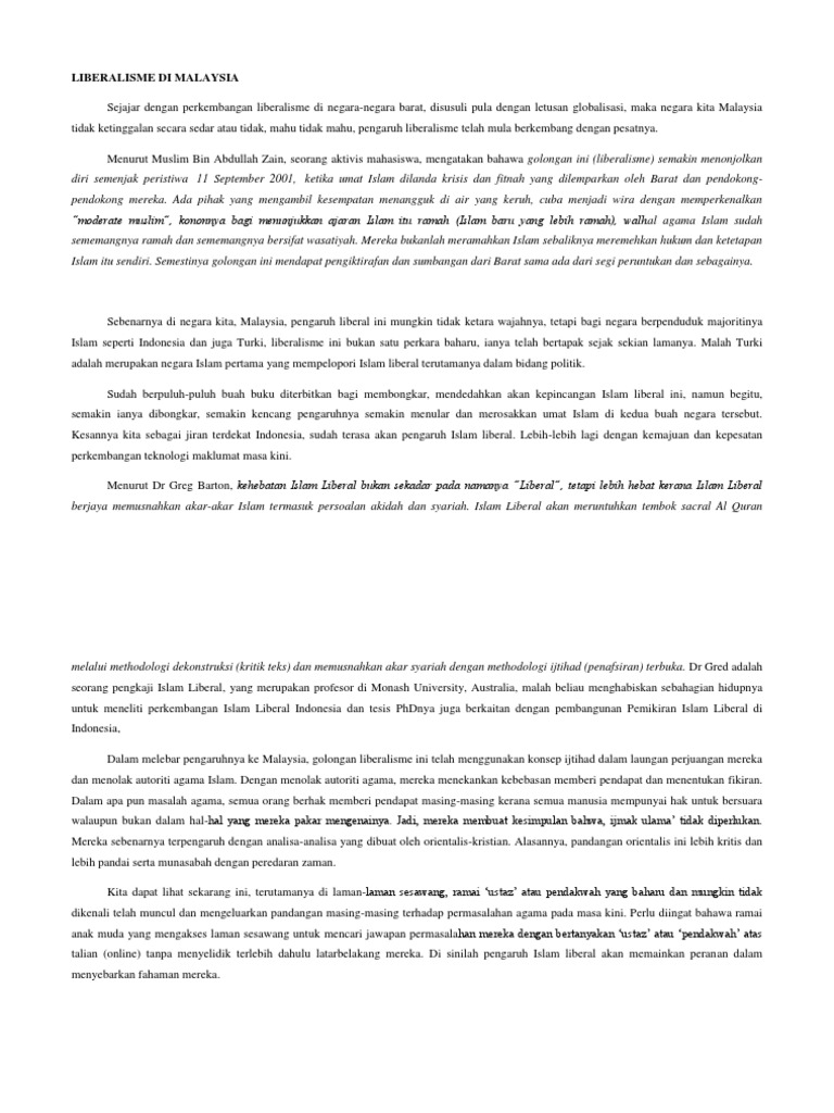 Setahun yang lalu mmi. Pengajian islam di ipt malaysia dalam menangani islam liberal. Portal islam dan melayu ismaweb berhasrat memikul peranan dalam mendidik dan membangunkan jati diri umat islam di malaysia melalui media. Bahawa masyarakat islam di malaysia masih beristiqamah mempertahankan dominasi islam di dalam masyarakat malaysia 15 prinsip islam liberal secara umumnya aliran islam liberal berpegang kepada beberapa prinsip ajaran yang tidak terpisah dari roh perjuangan mereka iaitu.