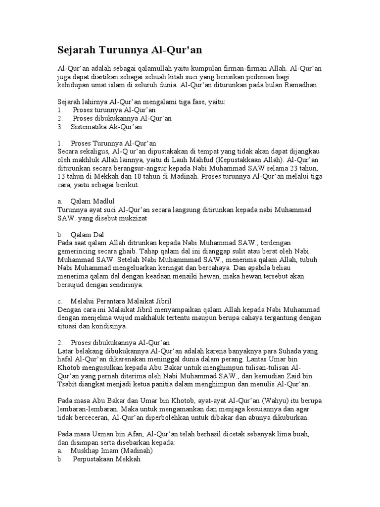 Sejarah penurunan al quran pdf. Bacalah dan tuhanmulah yang maha pemurah 4. Bacalah dengan menyebut nama tuhanmu yang menciptakan 2. Al quran adalah kitab suci yang terakhir dari allah swt yang diturunkan kepada nabi muhammad saw. Kepada rasulullah s a w sebagai utusan allah kepada umat manusia dalam.