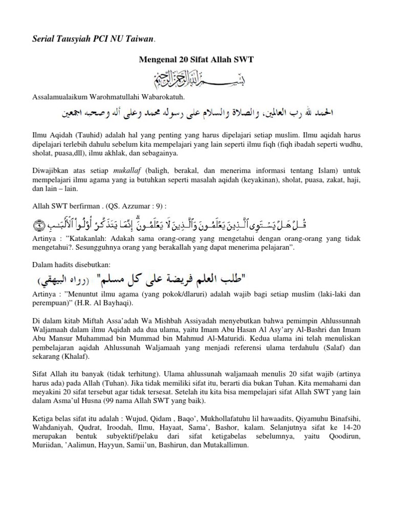 Sifat Sifat Allah Swt Dapat Dipelajari Dalam Ilmu