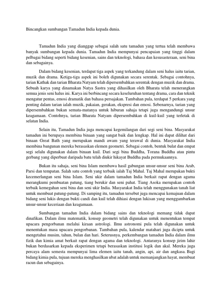 Cabaran kontemporari dalam tamadun india berpaksikan nasionalisme dan pemodenan oleh barat yang memberikan pengaruh dalam bidang politik ekonomi sosial dan keagamaan. Masyarakat tamadun ini berupaya membina binaan yang sangat baik dan lengkap dapat dilihat melalui binaan great bath. Tamadun india sejarah sumbangan nama no. Sumbangan tamadun india kepada dunia ciri ciri tamadun pusat pentadbiran dan keagamaan merupakan pusat utama dan perumahan merupakan pusat kedua penting disusun rapi dengan kemajuan geometri serta sumbangan daripada tamadun mesopotamia dan mesir purba terbahagi kepada dua.