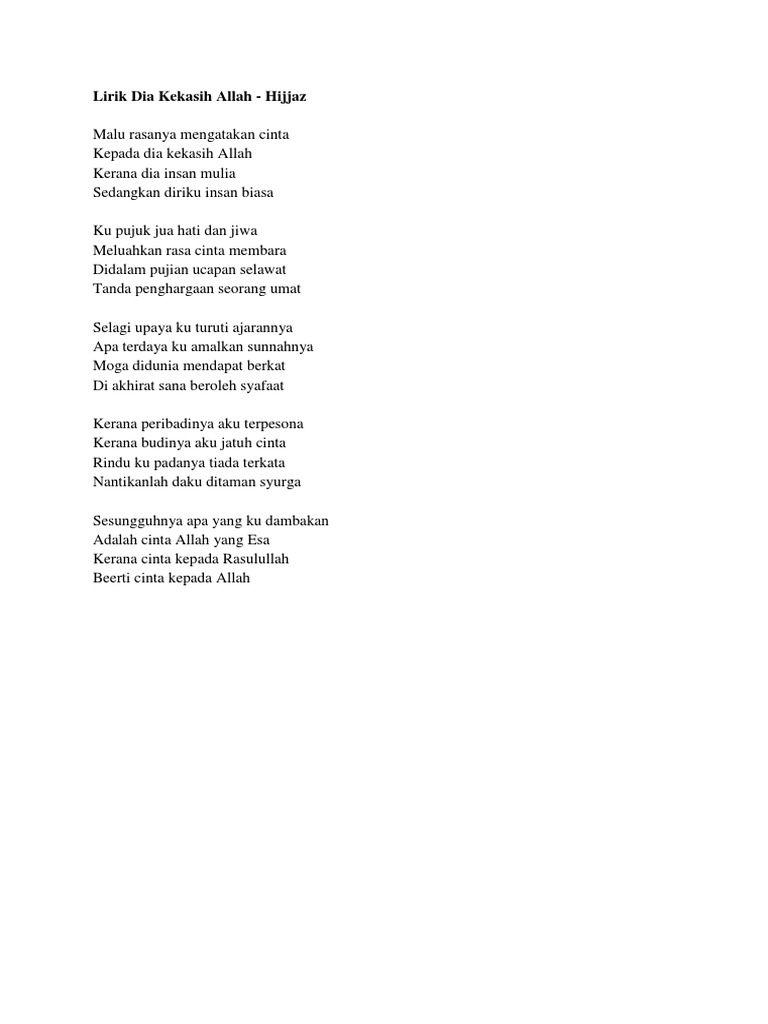 Pepatah itu wujud kerana kehidupan manusia berkaitan dengannya. Sumaiyah kau dibunuh didunia sementara untuk hidup disyurga yang selama lamanya kaulah. Lirik to you dot com saturday 1 december 2012. Sambil menghayun buaian biasanya kita mendodoikan bayi dengan zikrullah yang mudah mudah syair orang orang tua yang mendidik hati atau dengan nasyid yang bersesuaian.