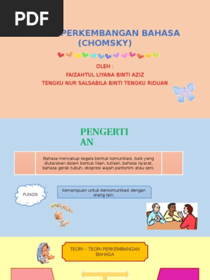 Teori chomsky perkembangan kanak kanak. Teori perkembangan komunikasi kanak kanak. Bagi membantu perkembangan bahasa kanak kanak pada usia ini. Teori ciri ciri pengetahuan bahasa lad language acquisition device kebolehan bahasa pengetahuan bahasa bermaksud pengetahuan kanak kanak tentang bahasa iaitu tentang bentuk ayat sistem makna dan sistem bunyi yang didengar dalam bahasa yang digunakannya. Teori perkembangan bahasa chomsky menurut naom chomsky 1957 seperti yang dinyatakan oleh haliza hamzah 2009 menyatakan bahawa setiap individu telah diprogramkan secara genetik untuk belajar bahasa.