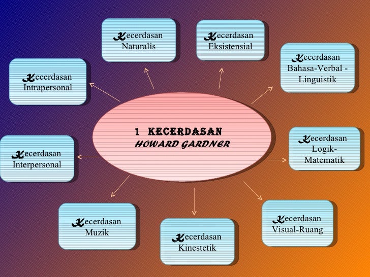 Teori kecerdasan pelbagai howard gardner. Menurut gardner manusia mempunyai kesemua lapan kecerdasan. Beliau mengemukakan lapan kecerdasan manusia yang dapat diperkembangkan sepanjang hayat. Maksudnya setiap orang memilki bermacam macam kecerdasan tetapi dengan kadar pengembangan yang berbeda. Teori kecerdasan pelbagai howard gardner teori pelbagai kecerdasan telah dikemukakan oleh howard gardner 1983.