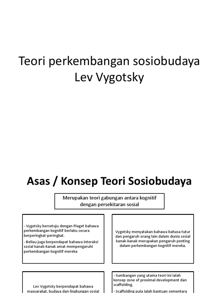 Teori perkembangan kognitif lev vygotsky pdf. Urutanurutan tahapan tahapan bersifatbersifat universal universal tetapitetapi batasanbatasan waktunya waktunya berbedaberbeda bedabeda tergantungtergantung budaya budaya a. Lev vygotsky 1896 1934 berpendapat bahwa perkembangan kognitif dan bahasa anak anak tidak berkembang dalam suatu situasi sosial yang hampa. Teori vygotsky menyatakan bahwa anak belajar secara aktif lebih baik daripada secara pasif. 44 secara spesifik menyimpulkan bahwa kegunaan alat berfikir menurut vygotsky adalah.