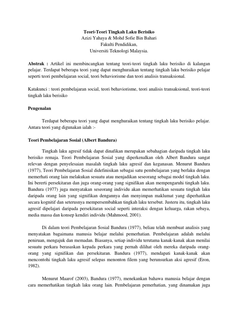 Setiap ibu bapa dan pendidik mempunyai cara tersendiriuntuk mengendalikan tingkah. Menurutnya tingkah laku remaja terhasil akibat daripada pengalaman pengasuhan kanak kanak. Teori behavioristik merupakan teori dengan pandangan tetang belajar adalah perubahan dalam tingkah laku sebagai akibat dari interaksi antara stimulus dan respon. Pdf teori pembelajaran sosial moh a r i f andrian.